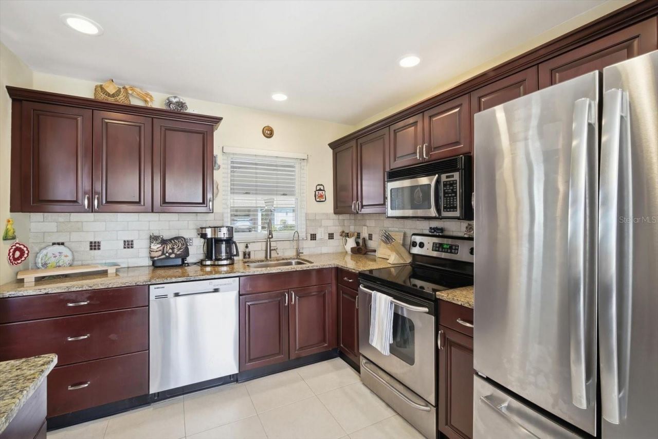 Welcome to easy Florida living in this 2-bedroom, 2-bath 55+ villa in beautiful Sarasota just 15 minutes away from Siesta Key! Comfortable, bright, and thoughtfully designed and NEW Roof and HVAC (2024) for added peace of mind - Come enjoy the relaxed lifestyle Sarasota is known for.Step inside to discover tile flooring throughout the entire home - no carpet here, creating a low-maintenance living space that's perfect for Florida living. The stylish kitchen features rich wood cabinetry, granite countertops, a beautiful backsplash, and stainless steel appliances, offering both charm and functionality for everyday cooking and entertaining. Just off the kitchen, the sunny dining area is filled with natural light thanks to two large sliding glass doors, making it a welcoming place to start your morning or gather with friends.The spacious great room provides plenty of room to relax or host guests, with an open feel that makes the home comfortable and inviting. Both bedrooms are nicely sized, including the primary suite with a walk-in closet and private bath, offering a peaceful retreat at the end of the day. A laundry room conveniently located just off the 2 car carport adds everyday ease and practicality.Life in Strathmore Riverside Villas is about more than just the home - it's about the lifestyle. Residents enjoy a wide variety of amenities designed for both relaxation and connection. The clubhouse serves as the heart of the community, featuring a fitness room, library, billiards, ping-pong, and outdoor recreation areas. A large heated pool is perfect for lap swimming, exercising, or simply relaxing in the Florida sunshine.Even better, the monthly condo fees make living here simple and stress-free, covering exterior maintenance, grounds care, water, and cable. Owners only pay for electricity and internet, allowing you to spend more time enjoying the Sarasota lifestyle and less time worrying about upkeep.For those who love being near the water, the community offers day docks for launching kayaks and fishing, along with a marina where owners can rent boat slips on a first-come basis. The social calendar stays active year-round with dances, dinners, educational luncheons, game nights, and community gatherings. Residents can also participate in a variety of social clubs including golf, arts and crafts, cards, boating, dining groups, and more, making it easy to meet neighbors and stay involved.Living in Sarasota means enjoying one of Florida's most beloved coastal destinations. Known for its beautiful Gulf Coast lifestyle, Sarasota offers an incredible mix of award-winning beaches, dining, and outdoor recreation. Just a short drive away is the famous Siesta Key Beach, celebrated for its powdery white quartz sand and stunning sunsets. Spend your days soaking up the sunshine or enjoying waterfront restaurants in Siesta Key Village.Sarasota is also known for its vibrant cultural scene, including theaters, museums, and waterfront parks, along with endless opportunities for boating, fishing, golf, and exploring the natural beauty of Florida's Gulf Coast. Whether you're enjoying a quiet morning coffee at home, joining neighbors for a social event, or heading out to the beach for the afternoon, life here offers the perfect balance of relaxation and activity.If you've been searching for a welcoming 55+ community, fantastic amenities, and the Sarasota lifestyle close to Siesta Key, this villa is ready to welcome you home.