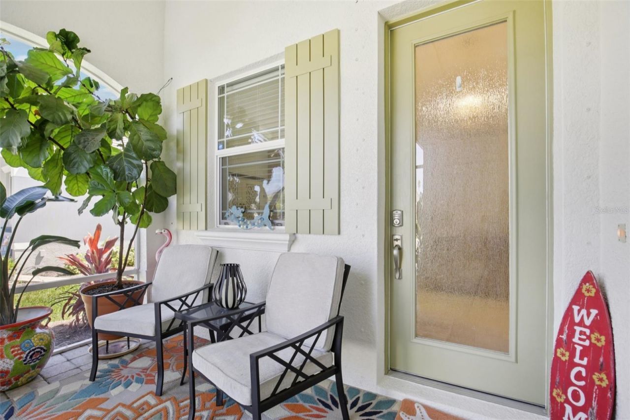 Experience just another day in paradise in this stunning Medallion Home, situated on one of the development's most coveted PREMIUM lots-a $60,000 upgrade that ensures a level of privacy and scenic beauty rarely found in University Village. This isn't your typical straight-shot villa; a dedicated foyer welcomes you into a layout that feels like a spacious detached house, featuring 17 tile, Caesarstone counters, and a high-end NEW LG appliance suite, including a brand-new $2,500 refrigerator and gas range. Fresh 4-week-old exterior paint. There are 2 bedrooms and 2 baths, but the real bonus is the den with privacy doors that are perfect for a quiet home office, guest space, or hobbies. Den has a built-in closet. Natural light pours through a kitchen solar tube, while the extended lanai serves as a private, tropical sanctuary where you can watch the sunrise and sunset amidst a butterfly-filled garden. Perfect for those relocating from the North, this location is unbeatable: you are less than 15 minutes from the beach, 4 miles from the bay breezes, and just a short drive to the luxury shopping at UTC, the dining at St. Armands Circle, and the world-famous sands of Siesta Key. Maintenance-free living, all ages, only $925 HOA fee paid quarterly, dog-friendly, active community, and the peace of mind of being on the Sarasota/Manatee power grid make this motivated-seller gem the ultimate Florida retreat.