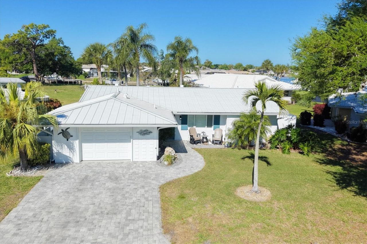 Boat Ready Living in Englewood Isles! This beautifully remodeled 2 bedroom, 2 bathroom, oversized 1 car garage split floorplan home is being sold furnished and features a 2023 metal roof with third nail, impact windows, hurricane shutters for all windows, and a generator. The property also includes exclusive use of a 42 ft seawall with dock with water and electric, and a 13,000 lb lift, so your boat is always ready. Cruise through Forked Creek to Lemon Bay and out to the Gulf right from your backyard, making it easy to enjoy days on the water whenever you choose. A paver driveway and walkway welcome you inside, where LVP flooring and coastal style create a warm and inviting feel. The great room, dining area, and kitchen are all open, while the fully enclosed Florida room adds significant additional living space and makes the home feel incredibly spacious. The kitchen offers an abundance of white shaker style wood cabinetry with soft close hinges, granite countertops, a glass tile backsplash, and a pass-through bar to the Florida room, creating the perfect spot for casual dining or entertaining. Double barn style doors lead to the private ensuite primary bedroom, filled with natural light from the bay window and featuring a walk-in closet and a well appointed bathroom with a large fully tiled step-in shower, tile extending halfway up the walls, and an oversized vanity. The guest bedroom and bathroom are thoughtfully positioned on the opposite side of the home for privacy. The guest bedroom includes a reach-in closet, while the guest bathroom features a fully tiled tub and shower combination and a spacious vanity. A mini split air conditioning system in the Florida room keeps the space comfortable year-round, and for outdoor enjoyment, a paver and block patio provides a great setting for grilling your fresh catch, surrounded by beautiful landscaping that adds both privacy and charm. The garage is large and has an epoxy coated floor and space for the laundry area. Take a short walk across the expansive community green space to the dock and see for yourself just how easy it is to get out on the water for a full day of boating and fishing. Englewood Isles also offers a community pool and clubhouse, and the condo association covers irrigation, lawn maintenance, tree and shrub trimming, and pool care, allowing for easy, low maintenance living. Located at 35 Oakwood Drive N in North Englewood, this home offers a relaxed, maintenance-free lifestyle right between Englewood and Venice, making it easy to enjoy local events, waterfront dining, shopping, and entertainment. Spend your days exploring nearby beaches, then come home to a community that takes care of the details for you.