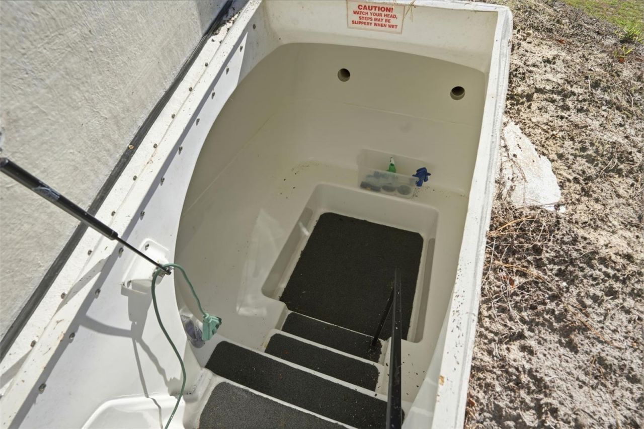 One or more photo(s) has been virtually staged. SPACIOUS HOME WITH MULTIPLE FLEX SPACES, TWO FOUR-SEASON ROOMS, & EXTENSIVE PARKING WITH A HURRICANE/TORNADO VAULT BELOW GROUND! ROOF 2014, AC 2019 with a 10 year warranty, GARAGE 2017, Carport 2017, NEW SIDING 2017 & UPGRADED ELECTRICAL PANEL! The WATER HEATER ALSO INCLUDES A ONE-YEAR WARRANTY. LEAF GUARD SYSTEM ON GUTTERS WITH A LIFETIME WARRANTY.Welcome to this 2 BEDROOM, 2 BATH HOME offering plenty of flexible living space. From the moment you arrive, you'll see the CONCRETE DRIVEWAY leading to the ONE-CAR GARAGE along with a BRICK PAVER DRIVEWAY for the ONE-CAR CARPORT, providing ample parking options. Inside, the home features a LARGE KITCHEN, DINING ROOM, FAMILY ROOM, & FORMAL DINING ROOM, creating plenty of room for everyone.The SPACIOUS KITCHEN includes a charming kitchen island, SOLID WOOD CABINETS, light blue countertops, & comes fully equipped with a REFRIGERATOR, STOVE TOP, BUILT-IN OVEN, & DISHWASHER. Throughout the main living areas you'll find LAMINATE WOOD FLOORING, while the bathrooms feature TILE FLOORING.The FORMAL DINING ROOM offers a convenient BUILT-IN BUFFET, & the LIVING ROOM is filled with BRIGHT NATURAL LIGHT from large windows. The PRIMARY SUITE provides a comfortable retreat with a NEW AC UNIT IN THE MASTER for those who like it very cold at night, a VERY LARGE CLOSET, & an EN-SUITE BATHROOM featuring a SHOWER with the VANITY & SINK AREA SEPARATE FROM THE SHOWER & TOILET ROOM for added privacy.The SECOND BEDROOM is generously sized & can easily accommodate a QUEEN-SIZE BEDROOM SET. The HALL BATHROOM features a STAND-UP SHOWER WITH BUILT-IN SEATS.One of the UNIQUE HIGHLIGHTS of this home is the TWO HURRICANE GLASS-ENCLOSED FOUR-SEASON ROOMS, perfect for relaxing year-round. The FIRST FOUR-SEASON ROOM leads to a DEDICATED LAUNDRY ROOM complete with DOUBLE SINK, SHELVING, & ITS OWN AC UNIT to keep you comfortable while doing laundry. Just beyond is an ADDITIONAL 2nd GARAGE SPACE, ideal for GOLF CART OR LAWN EQUIPMENT STORAGE, with a DECK JUST OUTSIDE THE GOLF CART PARKING AREA.A HUGE FLEX ROOM offers endless possibilities as an OVERFLOW PANTRY, LIBRARY, HOBBY ROOM, OR ADDITIONAL STORAGE SPACE. This room leads to the SECOND FOUR-SEASON ROOM, which features HURRICANE GLASS windows & doors with access to the MAIN ONE-CAR GARAGE. On the opposite side, you'll find a DEDICATED TORNADO SAFETY ROOM-ONE OF TWO in existence in the neighborhood INCLUDED WITH THE HOME.Additional features include ALL NEW SMOKE DETECTORS, ADT SECURITY SYSTEM WIRING, & CAMERAS THAT CONVEY WITH THE SALE (simply activate service if desired). Situated HIGH & DRY WITH NO FLOOD ZONE, this home offers peace of mind along with AMPLE STORAGE, MULTIPLE GARAGE SPACES, FLEXIBLE ROOMS, & YEAR-ROUND FLORIDA LIVING SPACES.Nestled in the sought-after High Point 55+ Golf Community, this home gives you the rare opportunity to enjoy resort-style amenities with low HOA fees-& yes, you own the land! Stay active & engaged with access to an 18-hole golf course, heated swimming pool, tennis courts, shuffleboard, bocce ball, & horseshoe pits. The community clubhouse is a social hub, offering a packed calendar of events, clubs, & gatherings throughout the year. For added convenience, there's even a dog park & RV storage available for rent. From joining community socials to spending sunny days by the pool or enjoying a match of pickleball, there's no shortage of things to do in this secure, gated neighborhood with staffed entry.